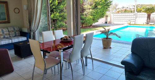 Luxury apartment SEA HELM with private swimming pool and BBQ坐落于拉格尼西,提供户外游泳池,距离风筝海滩(Kiteza Beach)有5分钟步行路程,距离大海滩(Grand Beach)有不到一公里,距离拉夫里翁科技文化园有22公里。这家自助式公寓拥有私人泳池、花园、烧烤设施、免费WiFi和免费私人停车位。