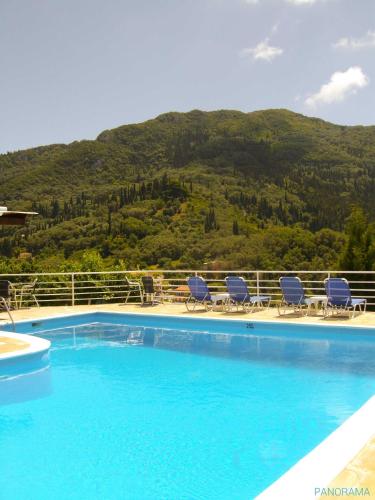 Panorama guests can walk to the beach or relax by the poolside with a refreshing drink and enjoy unique views of the blue sea and the green mountains. Agios Gordios Beach is a 13-minute walk. 300 meters on the way back from the center of Agios Gordios village is uphill.