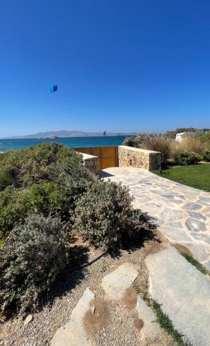 Sun, Beachfront Villa with Stunning Views, Mikri Vigla Naxos位于米科利维亚,距离麦克里弗基拉海滩(Mikri Vigla Beach)仅有几步路,提供季节性室外泳池、露台和免费WiFi。这家自助式度假屋配有私人泳池、花园和免费私人停车位。
