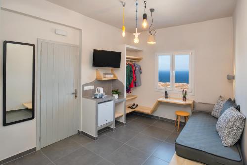 这家Cycladic风格的Afrodete Hotel酒店位于圣托里尼(Santorini)首都Fira的小山Firostefani,设有一个水力按摩浴缸,享有爱琴海和Anafi岛的景色。