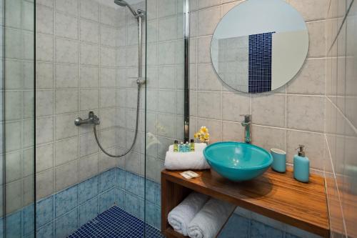 Afrodete酒店装饰独特的明亮客房设有空调。每间客房均拥有自己的浴室、冰箱和电视机。部分客房设有阳台或露台,部分客房享有爱琴海(Aegean Sea)东部的景致。