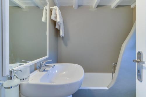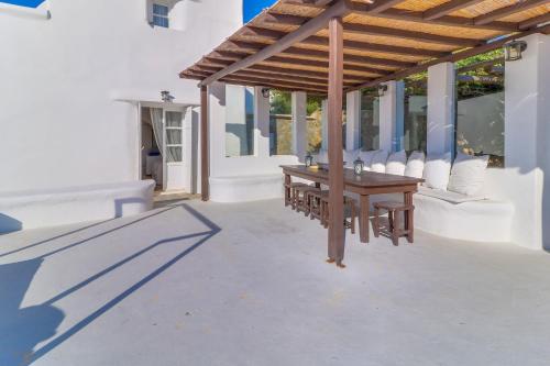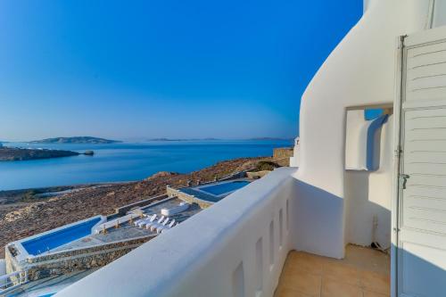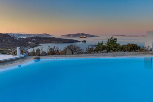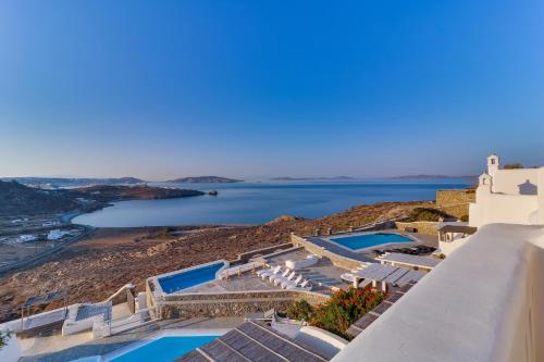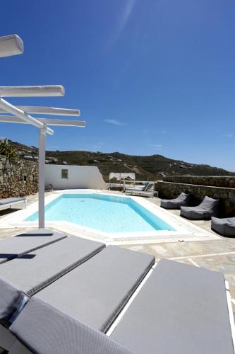 别墅采用传统的基克拉迪建筑风格建造,以白色和蓝色调装饰,并配有典雅的家具。别墅设在园景花园、露台、两个私人泳池和一个共用泳池之间。