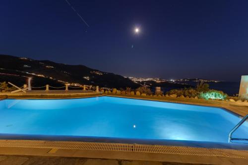 Seablue Villas别墅距离米科诺斯岛的风车和小威尼斯(Little Venice)约有7公里,距离Psarous Beach海滩不到9.9公里,距离米科诺斯机场(Mykonos Airport)有6公里。
