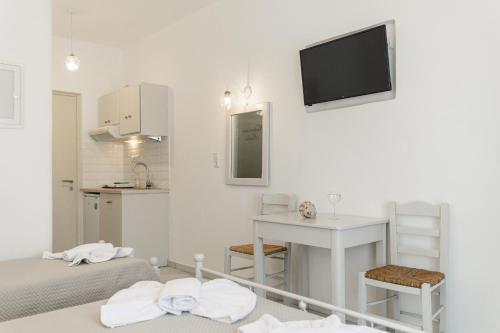 Katerina Babis Studios公寓式酒店距离阿吉奥斯普罗科皮奥斯(Agios Prokopios)的沙滩仅几步之遥,提供躺椅环绕的室外游泳池和带露台或阳台的空调住宿。