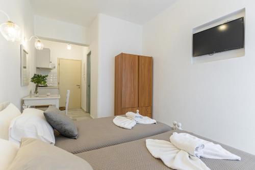 Katerina Babis Studios公寓式酒店距离阿吉奥斯普罗科皮奥斯(Agios Prokopios)的沙滩仅几步之遥,提供躺椅环绕的室外游泳池和带露台或阳台的空调住宿。