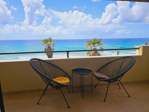 这家公寓享有海景,配备露台,配有2间卧室、起居室、平板电视、设施齐全的厨房以及2间带淋浴设施的浴室。这家公寓也配有2间浴室。
