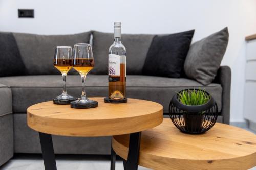 房间铺有瓷砖地板,配有带冰箱的设施齐全的厨房、用餐区、平板电视以及带淋浴设施和吹风机的私人浴室。住宿还配备炉灶、咖啡机和电热水壶。