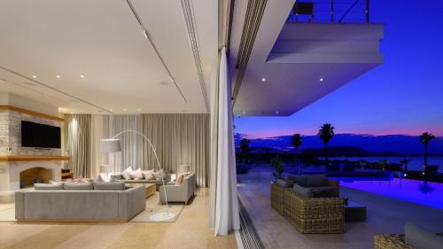 Beachfront Villa Natalia with Two Private Pools位于沃尔沃罗,提供享有山景和池景的庭院、全年开放的室外泳池、健身中心以及桑拿房。这家海滨住宿的客人可以使用桌球台、乒乓球桌和免费私人停车位。