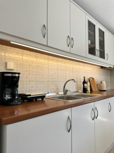 这家空调公寓配有1间卧室、起居室、带冰箱和咖啡机的设施齐全的厨房以及1间带淋浴设施和浴缸的浴室。这家公寓也拥有休息区和1间浴室。