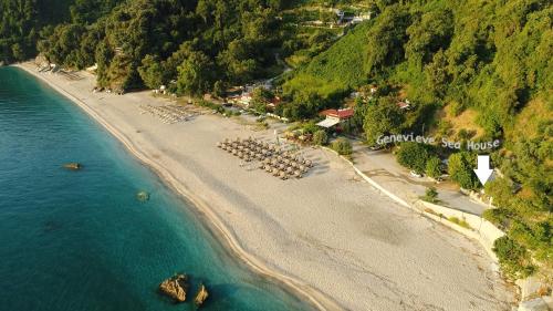 Genevieve Sea House - by the sea ....on the beach.位于Agii Saranta,提供带免费WiFi的海景客房,配备花园和露台。这家海滨住宿的客人可以使用阳台。