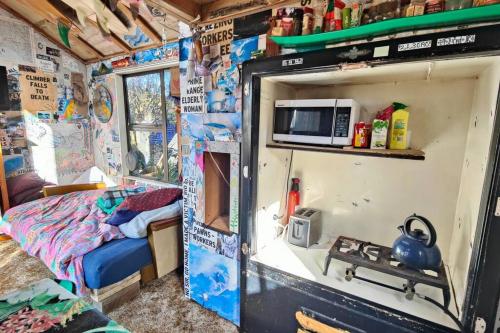 这家1卧室度假屋配有带平板电视的起居室、带冰箱的设施齐全的小厨房以及1间浴室。这家度假屋也配备1间浴室。