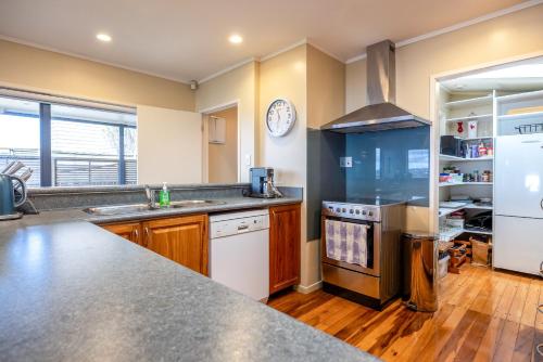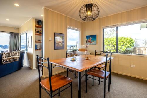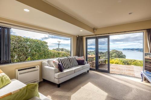 Double Bay Views, Oneroa - Be My Guest坐落于黑潭,距离奥内罗亚海滩(Oneroa Beach)有6分钟步行路程,提供阳台、花园和免费WiFi。这家度假屋配有免费私人停车位。客人可以在周边地区体验徒步和骑行等活动。