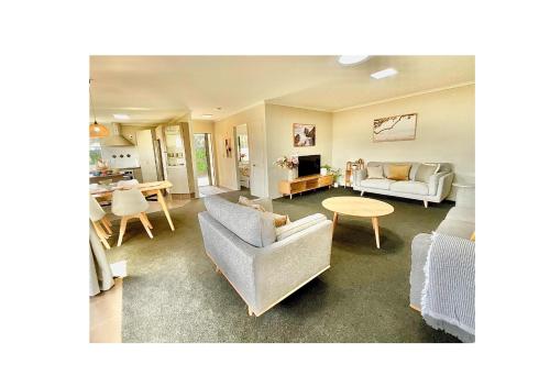 Free-Range On Papmoa Beach坐落于陶朗加,距离帕帕摩亚海滩(Papamoa Beach)仅有8分钟步行路程,配备花园、露台、烧烤设施和免费WiFi。这家度假屋配有免费私人停车位。客人可以在周边地区体验徒步、垂钓和浮潜等活动。
