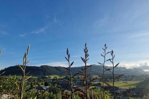 Modern Hilltop Retreat with Mountain Views位于罗托鲁瓦,提供露台,享有山景,距离天堂谷温泉野生动物园有12公里,距离埋没村庄有25公里。这家住宿距离罗托鲁阿国际体育场有12公里,提供花园和免费私人停车位。