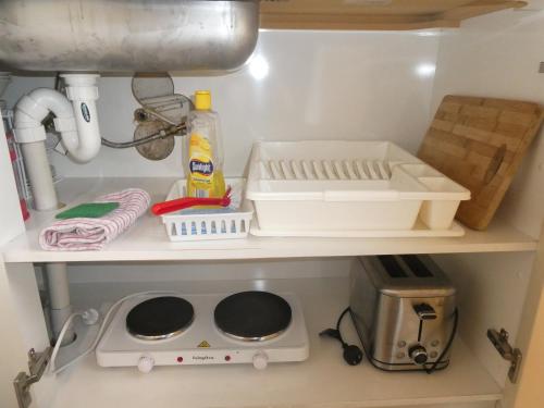 公寓设有休息区、带微波炉、冰箱和烤箱的完备小厨房以及带淋浴和洗衣机的浴室。