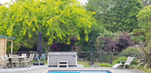 Deloraine Stone Cottage提供热水浴池。这家住宿配备阳光露台和儿童游乐场供客人使用。