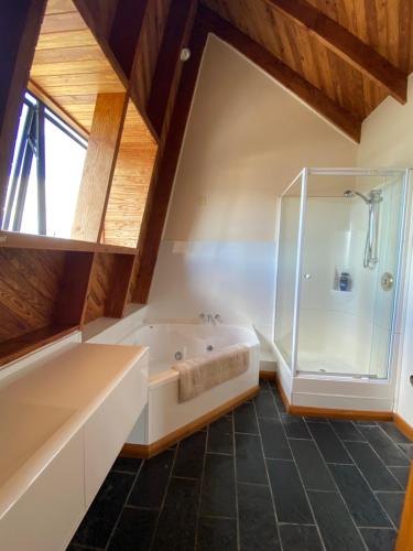 这家空调度假屋配有4间卧室、起居室、带冰箱和电热水壶的设施齐全的厨房以及2间带淋浴设施和吹风机的浴室。这家度假屋还配备平板电视、休息区、洗衣机以及2间带浴缸的浴室。