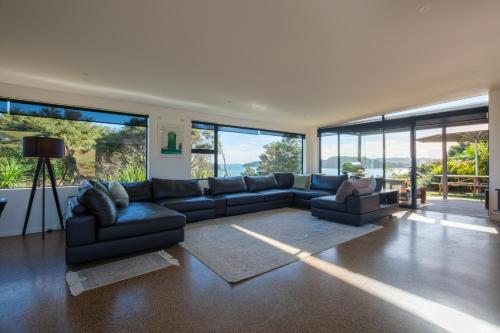 Wharetana Bay Villa with private walkway to beach!坐落于Te Whau Bay,距离欧丘卡湾海滩(Okoka Bay Beach)有2.3公里,提供花园、免费WiFi和礼宾服务。这家别墅配有免费私人停车位。客人可以在周边地区体验徒步、浮潜和骑行等活动。