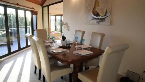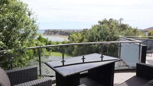 Luxury Holiday home with cliff top sea and city views坐落于奥克兰大区的旺阿帕劳阿,配有阳台,享有海景。这家度假屋提供免费私人停车位、共用厨房和免费WiFi。