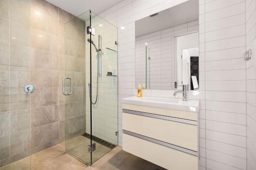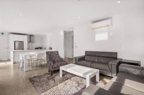 时尚的公寓均设有一个带长沙发、平面有线电视、DVD播放机和iPod基座的宽敞开放式用餐和起居区。每间公寓都拥有现代化的瓷砖浴室、熨烫设施、一台洗衣机和一台洗碗机。