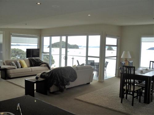 Edgewater Paihia酒店的所有客房均享有海景。每间公寓都配备了宽敞的厨房、洗衣设施以及带地暖设施的连接浴室。