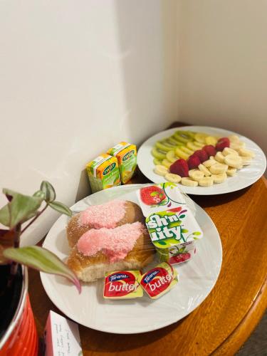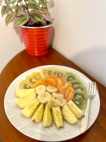 A private entrance leads guests into the homestay, where they can enjoy some fruits and chocolates or cookies. The property has an outdoor dining area.