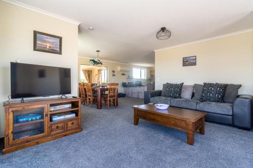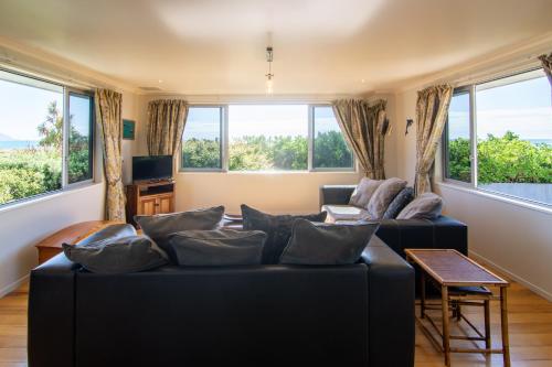 Comfortable Spacious Home, Close to Beach享有海景,提供阳台,距离凯库拉海滩(Kaikoura Beach)约有2.1公里。这家自助式度假屋配有花园、烧烤设施、免费WiFi和免费私人停车位。