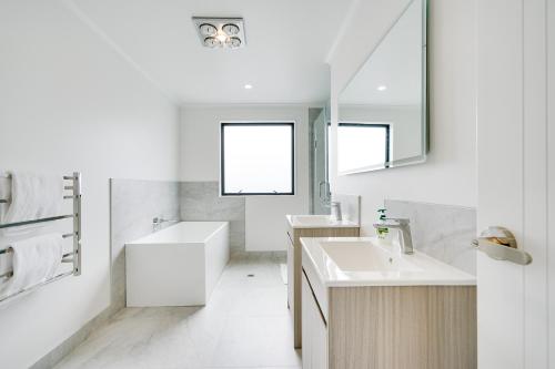 Fabulous River View - Brand New House In Hamilton享有河景,提供露台和阳台,距离汉密尔顿花园约有12公里。这家住宿距离怀卡托体育场有7.4公里,配备花园和免费私人停车位。