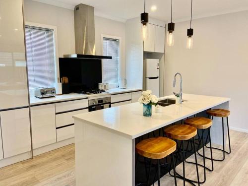 Morden spacious new house享有花园景,配备露台和庭院,距离汉密尔顿花园约有7.2公里。这家住宿距离怀卡托体育场有6.3公里,提供花园和免费私人停车位。