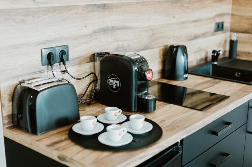 厨房配备冰箱、炉灶、吐司机和咖啡机。