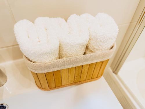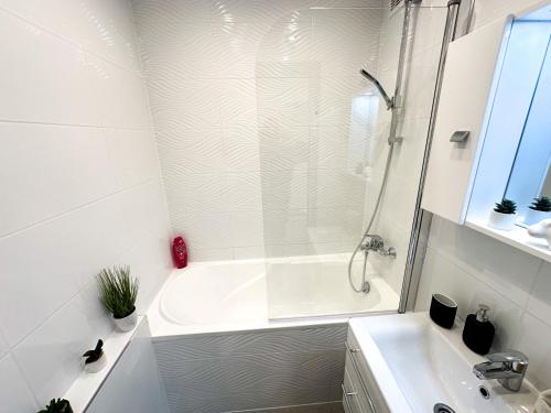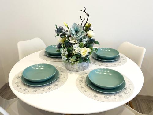 这家空调公寓配有2间卧室、起居室、带烤箱和咖啡机的设施齐全的厨房以及1间带浴缸和吹风机的浴室。这家公寓还配备平板电视以及1间带浴袍的浴室。