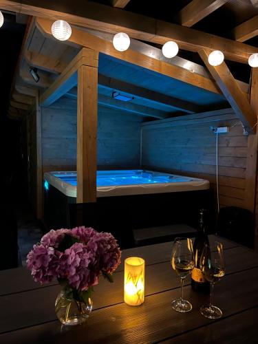 这家公寓提供热水浴池。Tópart Nyaraló配备儿童游乐场供客人使用。