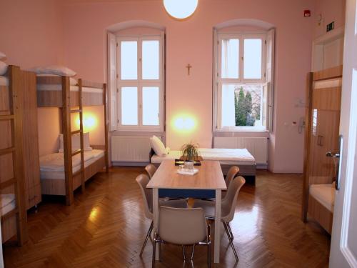 这家旅馆的所有客房都配备衣柜和平板电视。客房拥有咖啡机以及带淋浴设施和吹风机的私人浴室。部分客房还配备配备带冰箱的厨房。Ciszterci Szállás Pécs的所有客房都拥有床上用品和毛巾。