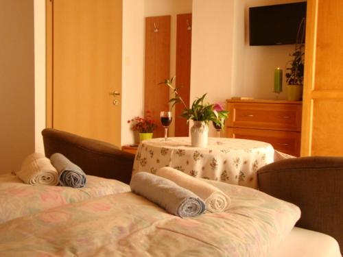 Virágoskert Apartman提供免费自行车、花园以及带露台和免费WiFi的空调住宿,距离赫维兹温泉湖有不到一公里。内部提供私人停车位。