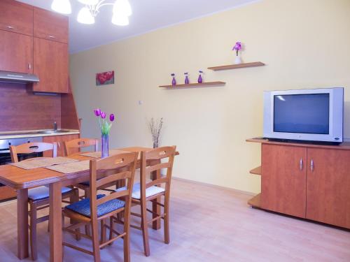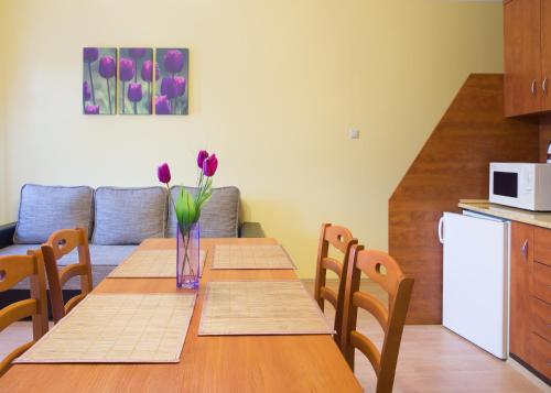 房间铺有镶木地板,配有带冰箱的设施齐全的厨房、用餐区、带有线频道的平板电视以及带淋浴设施和吹风机的私人浴室。住宿还提供微波炉和炉灶以及咖啡机和电热水壶。