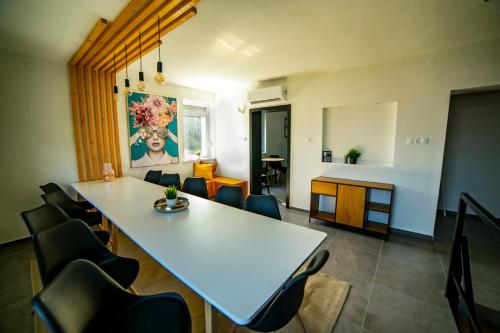 这家空调别墅配有6间卧室、起居室、带冰箱和咖啡机的设施齐全的厨房以及3间带淋浴设施和热水浴池的浴室。这家别墅还配备休息区、洗衣机以及3间带免费洗浴用品的浴室。