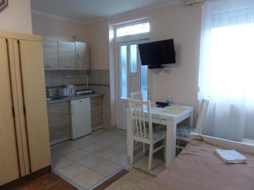 房间配有空调、设施齐全的小厨房、平板电视以及带淋浴设施和吹风机的私人浴室。
