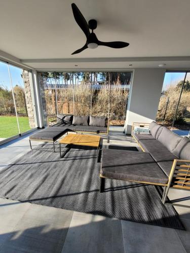 这家别墅提供5间卧室、4间浴室、床上用品、毛巾、带卫星频道的平板电视、用餐区、设施齐全的厨房以及池景露台。这家空调别墅还配备休息区以及4间带淋浴设施、热水浴池和浴缸的浴室。
