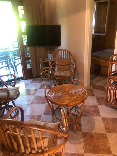 这家公寓享有花园景,为客人提供露台、休息区、卫星频道平板电视、带冰箱和微波炉的设施齐全的厨房以及带淋浴设施的私人浴室。住宿还配备炉灶和吐司机以及咖啡机和电热水壶。