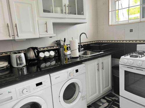 这家空调度假屋还提供平板电视、带冰箱的设施齐全的厨房、洗衣机以及1间带坐浴盆、淋浴设施和浴缸的浴室。
