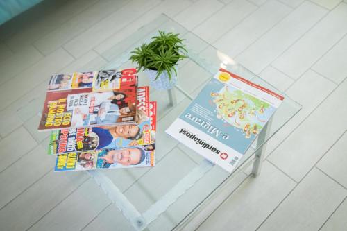 • Shared stationery such as printed menus, magazines, pens, and paper removed