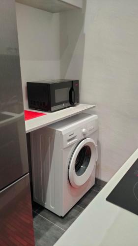 这家空调公寓配有1间卧室、起居室、带冰箱和咖啡机的设施齐全的厨房以及1间带坐浴盆和淋浴设施的浴室。这家公寓还配备休息区、洗衣机以及1间带吹风机的浴室。