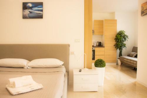 这家空调公寓配有1间卧室、起居室、带冰箱和咖啡机的设施齐全的厨房以及1间带坐浴盆和淋浴设施的浴室。这家公寓还配备休息区、洗衣机以及1间带免费洗浴用品的浴室。