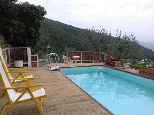Villa L'Oliveto位于特雷维,提供带免费WiFi的山景客房,配备季节性室外泳池、花园和共用休息室。这家度假屋配备免费私人停车位和共用厨房。
