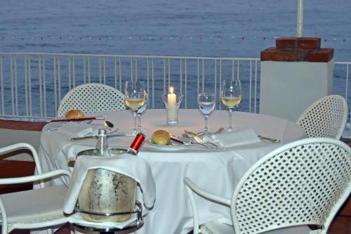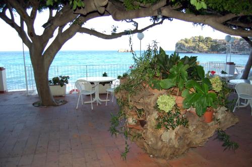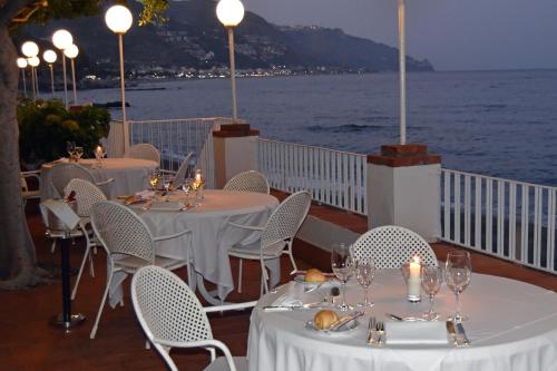 The restaurant serves Sicilian and international cuisine. It features a sea-view terrace.