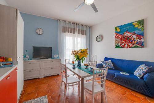 The apartment with a terrace and sea views features 1 bedroom, a living room, a flat-screen TV, an equipped kitchen with a microwave and a fridge, and 1 bathroom with a bidet. Towels and bed linen are provided in the apartment. The property has an outdoor dining area.