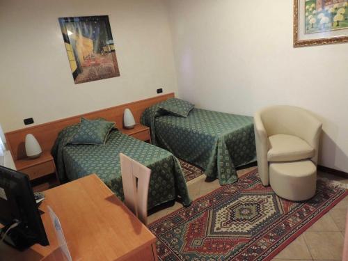 The rooms come with tiled floors, modern furnishings, and a private bathroom with shower, toiletries, and hairdryer. Each room offers air conditioning and a flat-screen TV.