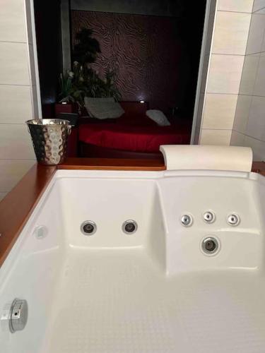 这家公寓配有1间卧室以及1间带浴袍的浴室。这家空调公寓还提供平板电视、带冰箱的设施齐全的厨房、休息区以及1间带坐浴盆、淋浴设施和热水浴池的浴室。