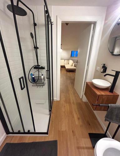 这家空调公寓配有2间卧室、起居室、带冰箱和咖啡机的设施齐全的厨房以及1间带淋浴设施和吹风机的浴室。这家公寓也配备休息区和1间浴室。