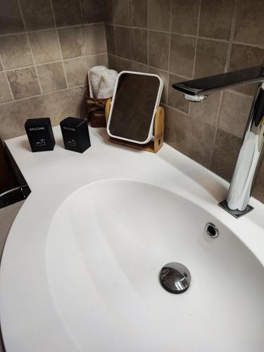 这家空调公寓配有1间卧室、起居室、带冰箱和咖啡机的设施齐全的厨房以及1间带坐浴盆和淋浴设施的浴室。1间浴室配有浴缸,也提供免费洗浴用品,提供毛巾和床上用品。